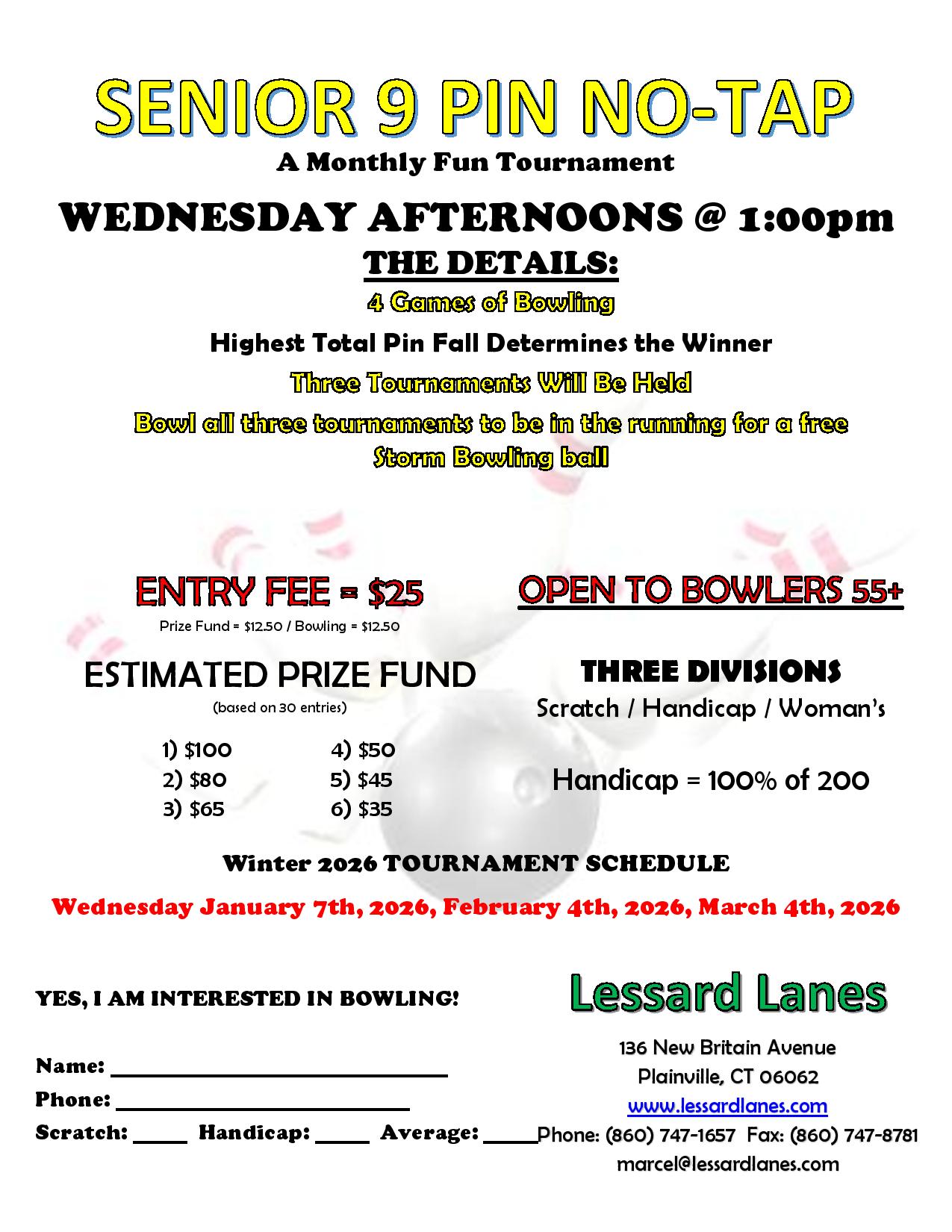 Due to the winter storm on Sunday, January 25th, 2026, Lessard Lanes will be closed all day. All leagues are also cancelled on Sunday. We are tentatively planning to open back up on Monday, January 26th at 4pm. Thank you for your cooperation and stay safe everyone.